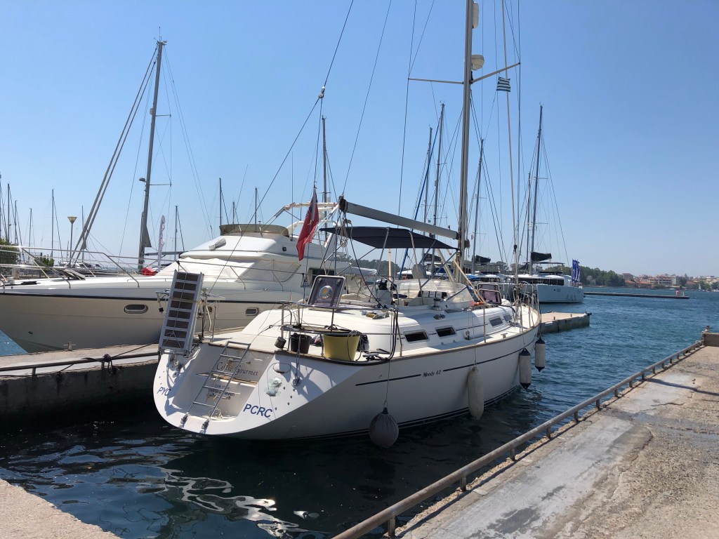 On 2nd August we slipped our lines and left Preveza, we motored to Lefkas as we didn’t yet have any sails attached. We had new rigging installed which still needed to be fine tuned before we could sail, this was due to be done in a couple of days in Lefkas so we anchored just at the end of the Lefkas channel before going into the marina for the rigging work to be completed.