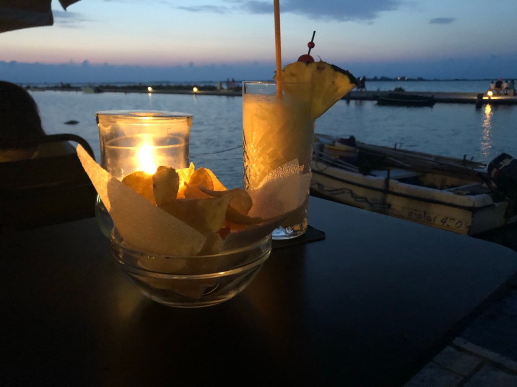We spent a night in Lefkas Marina, walked into town and found a great bar to watch the sunset with the best piña colada.