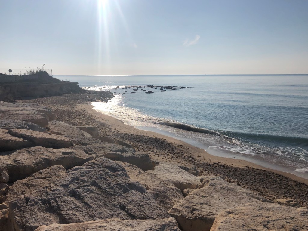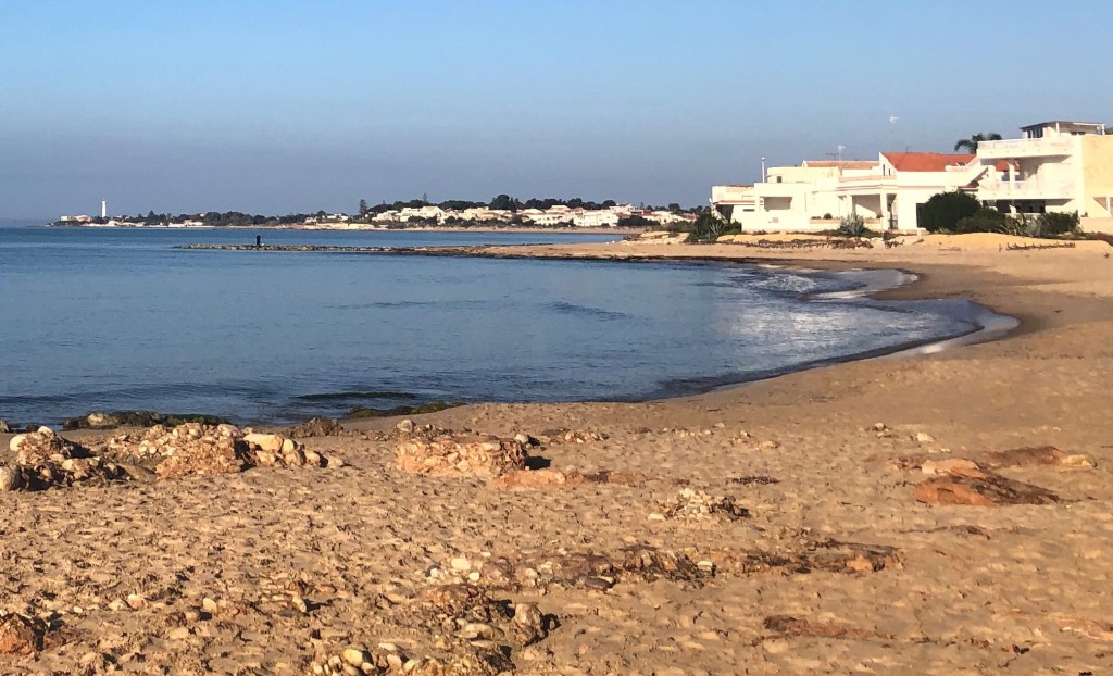 The beach to the west is a little more rugged, with a rocky coast, it is not lined with the same beach bars etc but there are many houses along the beach looking out to the sea.