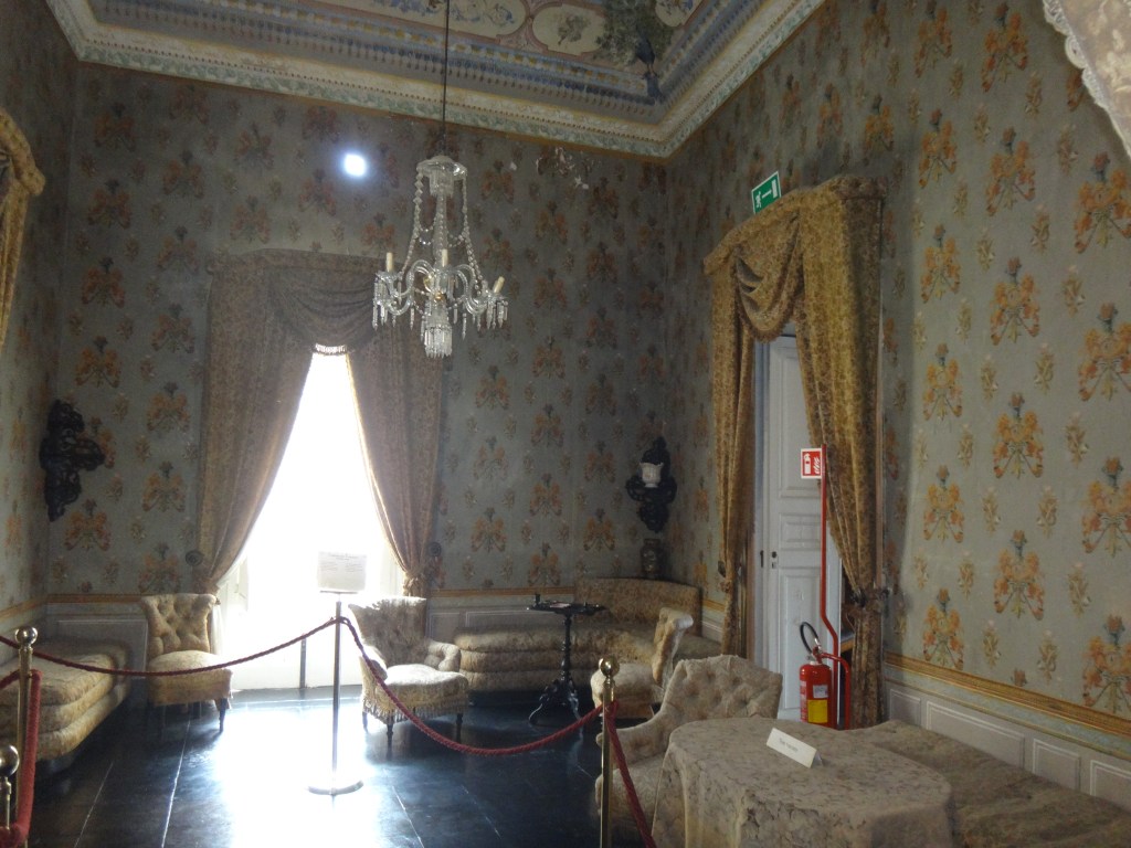 Above is the Music Room with painted Sicilian landscapes and a variety of piano’s. There seemed to be a room to fulfil every function including entertainment, games, a picture gallery and library. There were also bedrooms with connecting drawing rooms for each member of the family plus numerous guest rooms, the decoration of each dependent on status of the visitor.