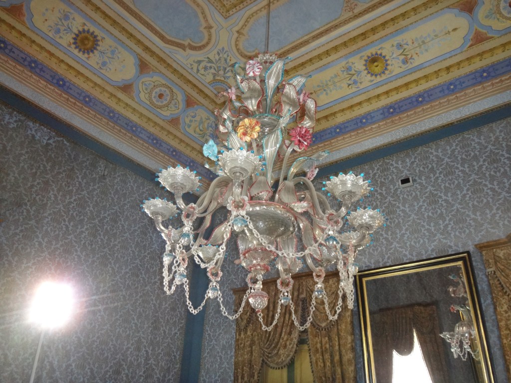 In reality it is no longer a castle, but a palatial mansion with 122 rooms of which 28 are accessible to the public displaying original period decoration, trompe l’oeil ceilings, traditional furniture and spectacular chandeliers. We were the only visitors at the time so had the place to ourselves, it was like we had our own private castle.