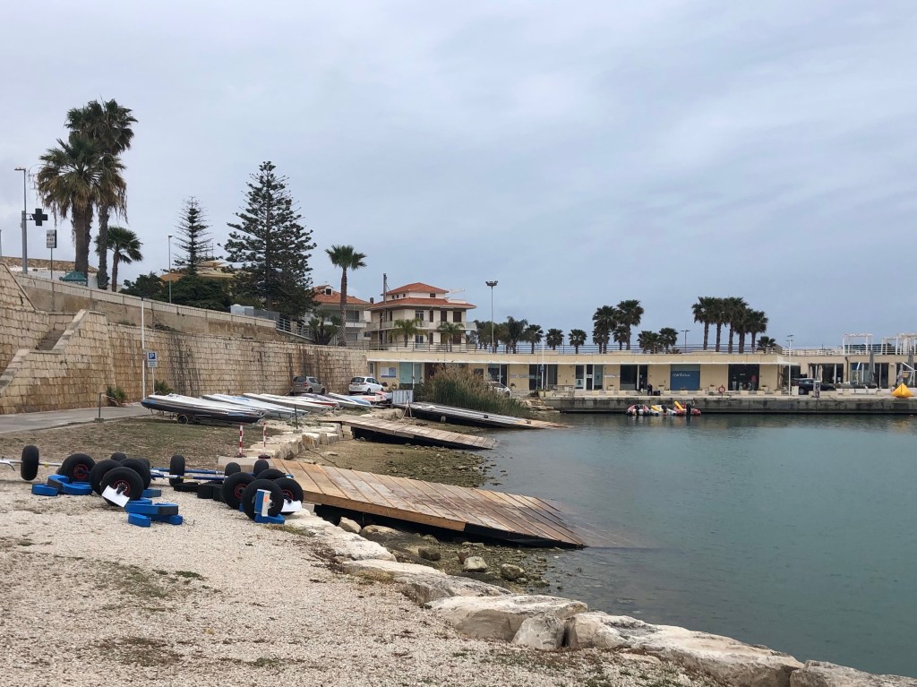 Apparently there was a lot of research done to choose the best location to train as they are not allowed to travel to Japan until early July. They decided on the tourist port of Marina di Ragusa as the gulf is oriented almost exactly like Enoshima Yacht Harbour, the thermal and wind shifts, waves, seabed and depth are all very similar, and soon the temperature will be similar to Enoshima in July, around 30 degrees.