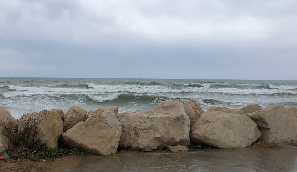 Winds blew consistently in the 30’s with gusts of 50 kts. We walked along to the beach to take a look and got completely sandblasted and salt sprayed, it was difficult to walk in the wind and waves were crashing over the rocks so we didn’t hang around there for long!
