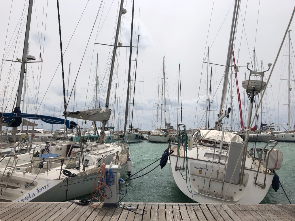 The high winds came as predicted, it always seems worse at night when you’re trying to sleep, we could hear it howling through the masts causing halyards to rattle, this noise along with the rocking and jolting of the boat as it pulls on the mooring lines, caused us a couple of restless nights!
