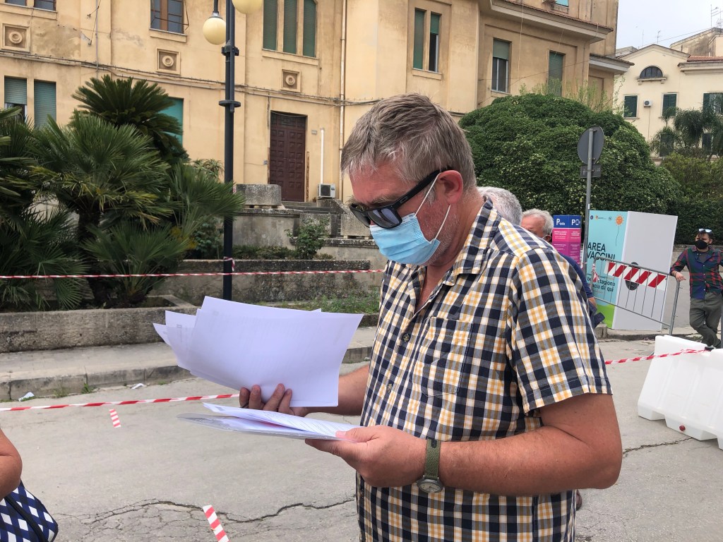 When our number was called we were sent into the hospital to the next ‘checkpoint’. This was where they made the final decision of whether we were entitled. All of our details were entered into the computer, thankfully we were successful and sent to the vaccine room. This was a small room with a desk where three people sat behind and a chair in front, it was like being interviewed! As Italy has made the decision to only administer Astra Zeneca to the over 60’s, we were both given the Pfizer vaccine.