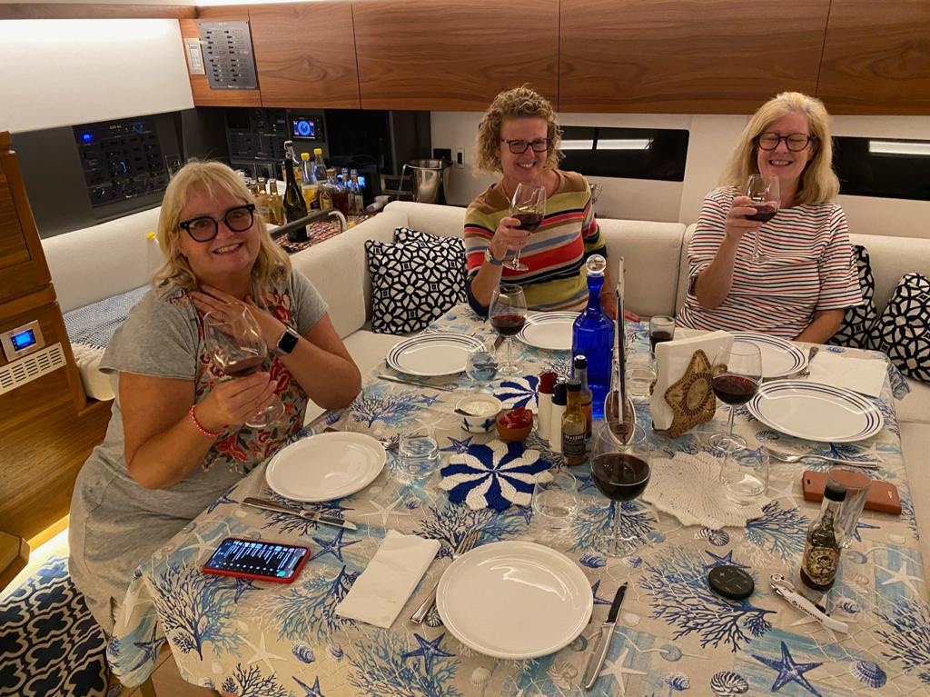 We also had a barbecue on our Canadian friends boat which always ends up with lots of food, drinks and dancing! The boys were out barbecuing their meat while the girls looked after the wine!