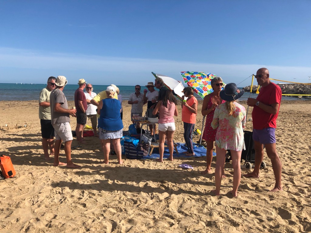 There was still time for a couple of social events before we left. We celebrated a friends birthday with a beach party. Boules, Viking Chess, Volleyball, swimming (for some), snacks and drinks were all involved.