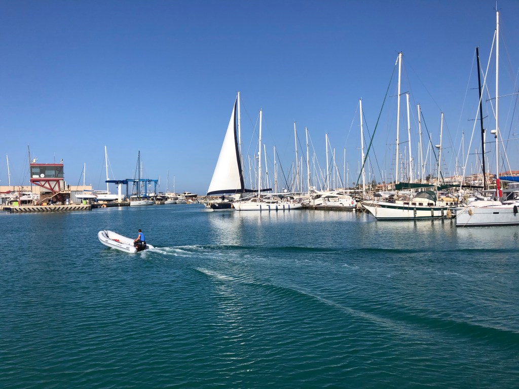 We set our course to go east approximately 30nm along the coast to Portopalo. It was an exciting first sail of the season, with good winds from behind, we were able to sail all the way with our Genoa only and were flying along with speeds up to 7 kts.