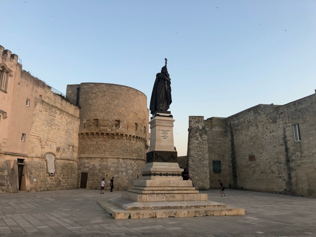 The Bishop and his 800 companions were beatified in 1771 and known as the Blessed Martyrs of Otranto. A Statue which has been erected in their honour stands just outside of the town walls. Later in 2013 they were canonised by Pope Francis.