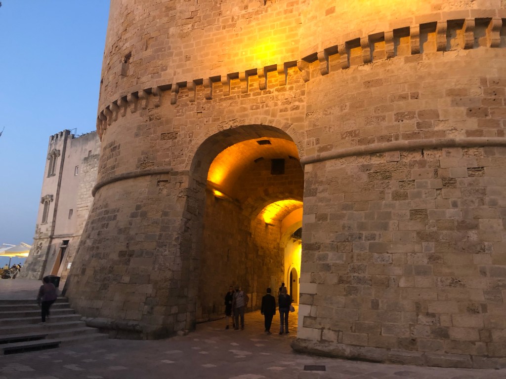 The town is still enclosed by its defensive walls, the Castello Aragonese formed part of the tough defences of Otranto, with its thick perimeter walls and robust towers it dominates much of the town. It was built on the site of an earlier fortress after the town was liberated from the Turks in the late 15th century.