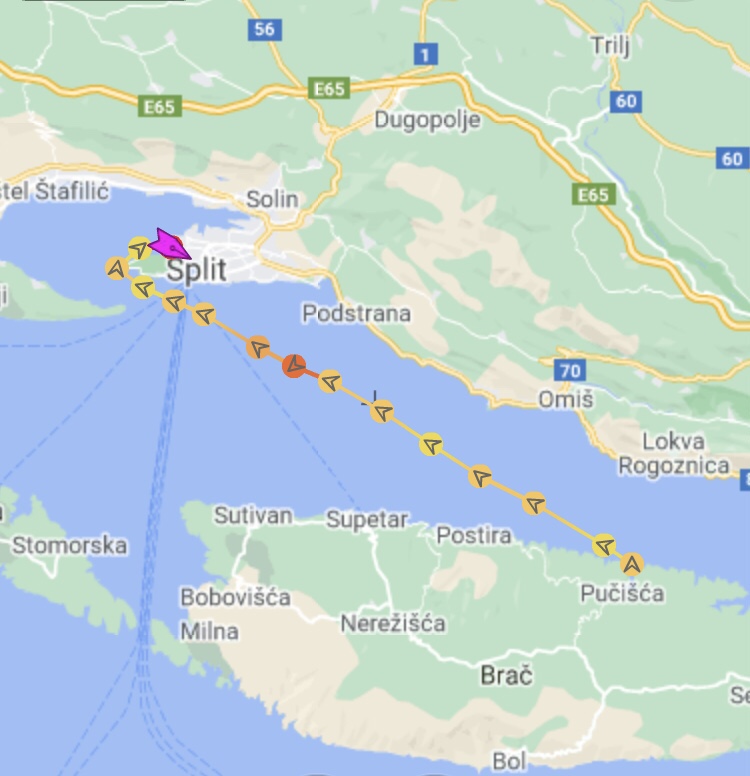 We headed northwest and set off on the 20 nm journey. We had a good force 3-4 easterly wind coming from behind so after motoring out of Pučišća we put up the Genoa and sailed along at a comfortable 4 kts. As always, just when everything is going well, the wind changes! It wasn’t long before the wind dropped and the engine was on. Thankfully it was only half an hour until the wind had moved around by 180° to the west and we were able to get both sails out for the rest of the journey.