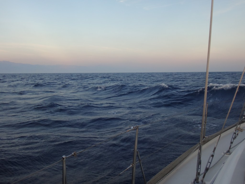 By the evening the wind dropped, we were rocking and rolling around and not really going anywhere so the sails came down and the engine went on, now at least we were able to go in the right direction and get back on course.