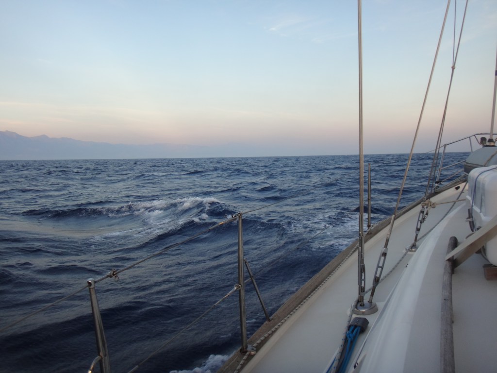 As the day went on it became obvious that we wouldn’t make landfall at Othonoi in daylight. The harbour here is very small with a tricky entrance and it is never recommended to approach such a place for the first time in the dark. So we switched to an alternative plan which was to change course and continue another 100nm down the east coast of Corfu to Lefkas island. We had heard that checking in to Greece would be more straightforward at Lefkas rather than Corfu.