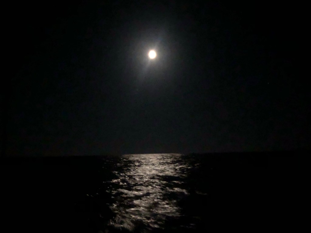 Apart from a couple of large passenger/cruise ships (which you can’t miss as they have so many lights!), it was an uneventful night with no other boats around. (Apologies for the blurry picture).