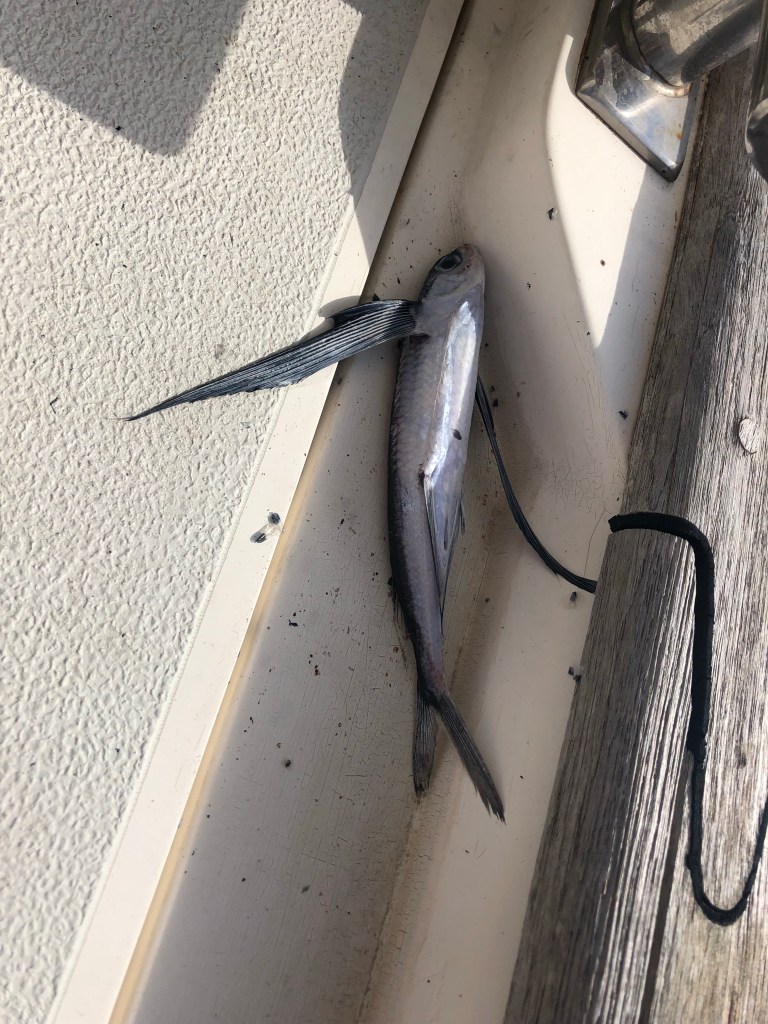 We noticed that a kamikaze flying fish had landed on the back deck during the night which Paul had to evict (thankfully it didn’t land in the cockpit while I was on watch as it would have given me a fright!)