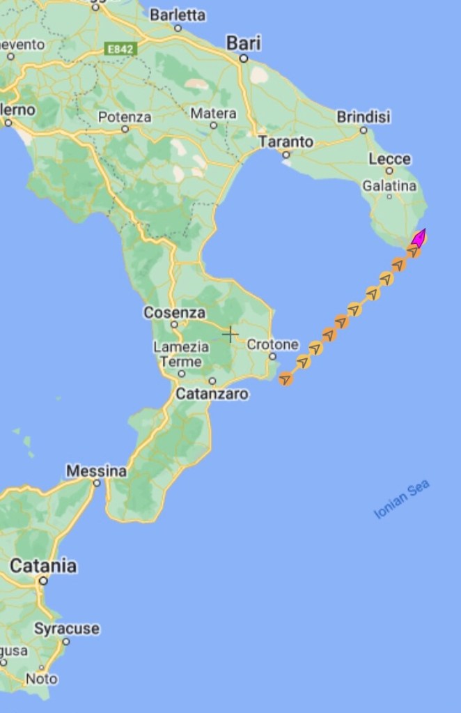 The weather forecast was favourable to sail from Sicily to mainland Italy, the wind was due to be force 3-4 from the southeast and our plan was to head along the bottom of the boot towards Crotone which would be approximately 150 nm.
