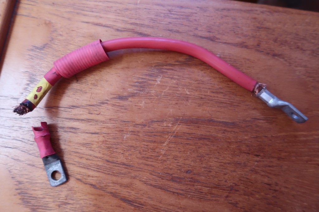 After motoring all afternoon we suddenly heard a change in sound from the engine and an alarm sounded. We stopped the engine and Paul went below to check what the problem was. He returned shortly afterwards with a cable from the alternator with one end broken off declaring ‘this could have something to do with it’. After rummaging through our ‘spare cables’ cupboard he found one that would fix the problem. Less than an hour later the problem was resolved and we were up and running again.