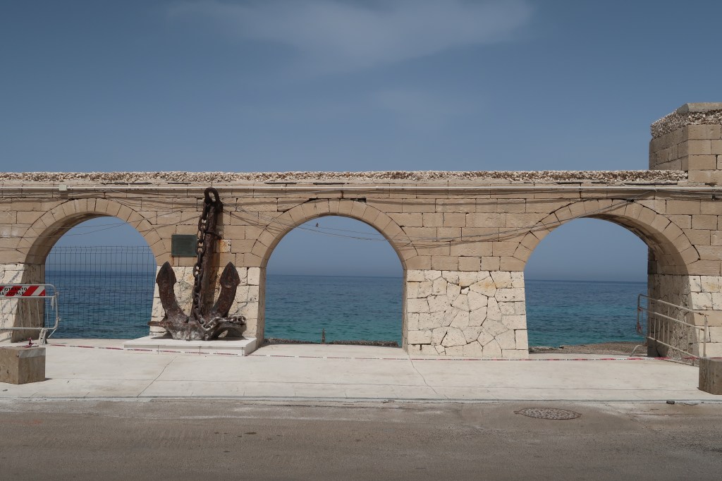 On our way back into town we passed an unusual sculpture of a ship called ‘The Landing, for Migrant Humanity’. It is the recovered vessel of the Albanian motor launch, Kater I Rades. In 1997 the ship was intercepted by the Italian Navy in the Straits of Otranto with 120 migrants on board, a collision occurred causing it to sink leaving only 34 survivors.