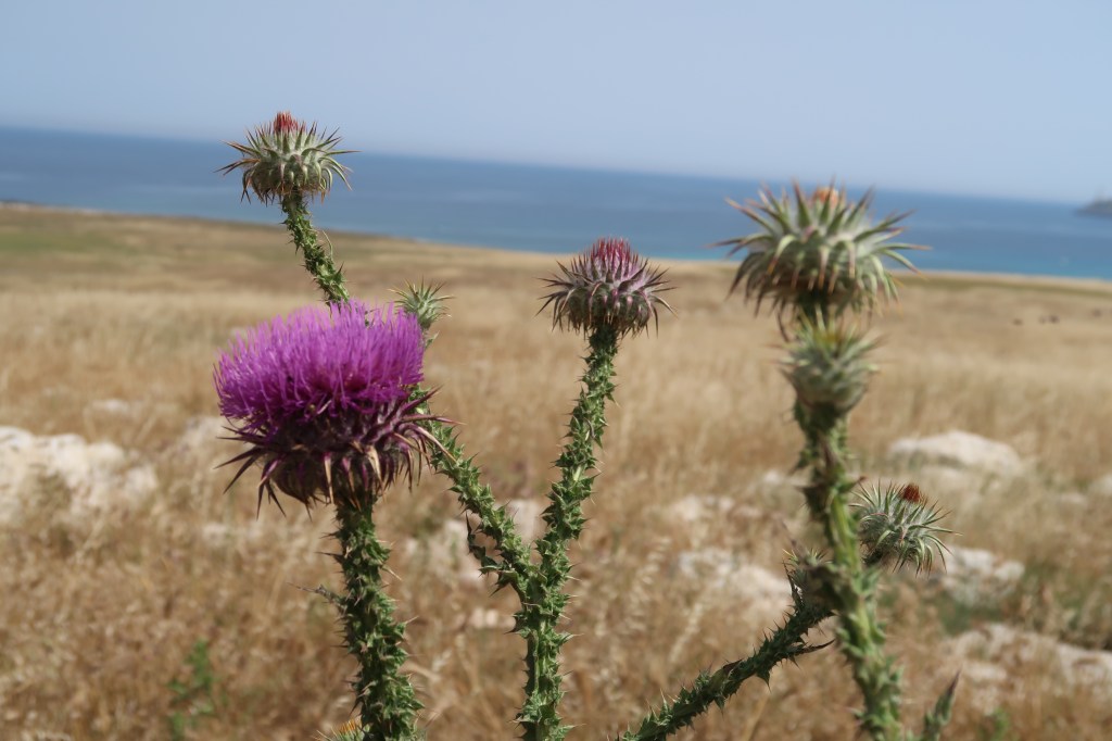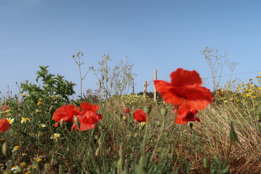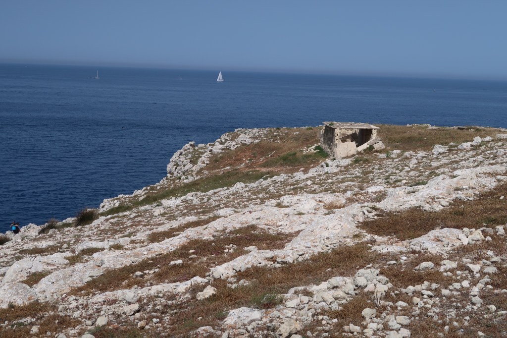 The path took us around small rocky coves alongside meadows of wild flowers, olive groves, pine trees and orchards, passing several WWII bunkers along the way.