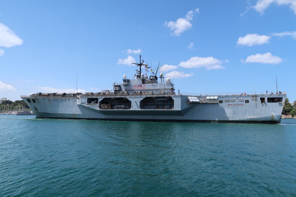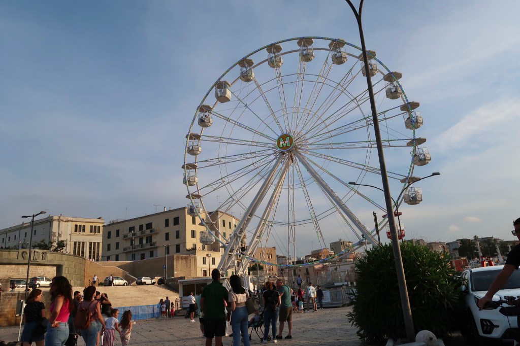 Brindisi has a large natural harbour, it is a thriving port for commercial and public shipping activities and has always been one of Italy’s most important ports. Several big ships were waiting to enter when we arrived.