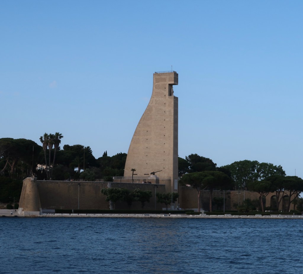 Located on the opposite side of the harbour is a monument to Italian Sailors. Created in 1933 it stands at 53m tall and is known as ‘The Rudder’.