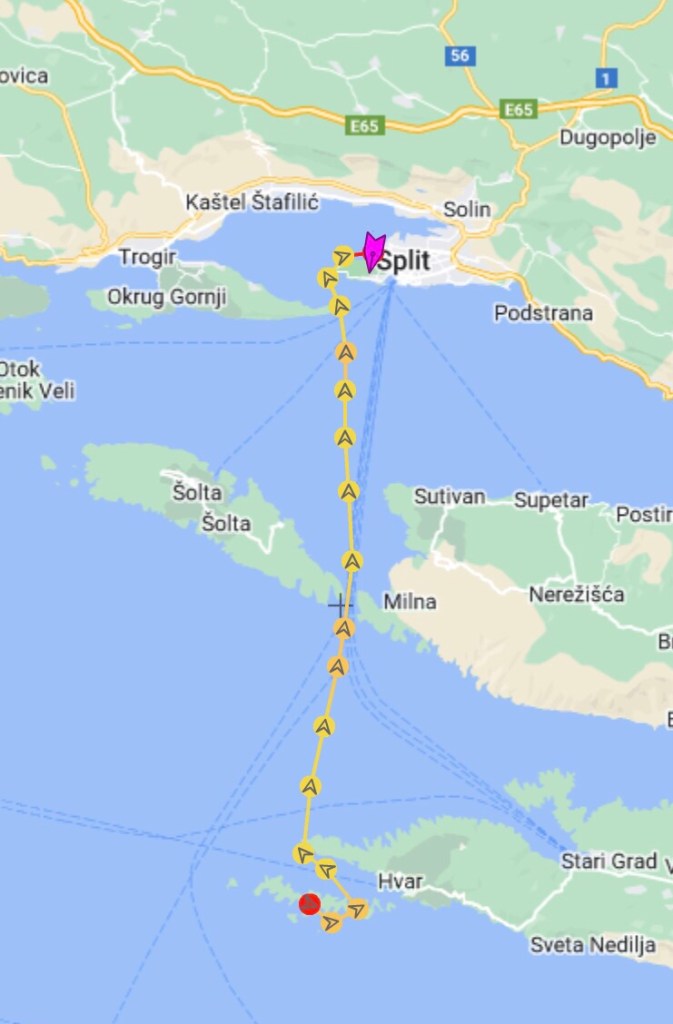 Continuing north towards Split, we passed Hvar town and sailed between the islands of Brač and Šolta.