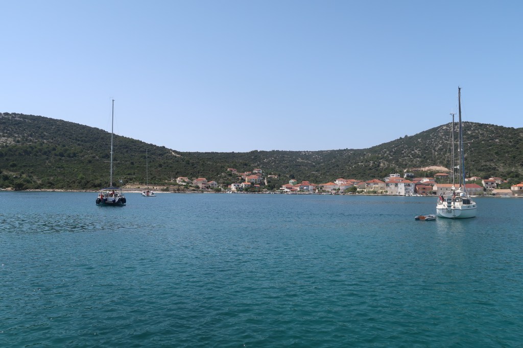 With the wind blowing from directly in front, we set off on a slow sail as we tacked our way back and forth around the coast. We eventually arrived at the small fishing village of Vinišće and anchored for the night. This large bay has good holding and is protected from the wind and swell so we enjoyed a calm evening. After a cooling swim we lit the barbecue and had a few drinks onboard while the sun went down.