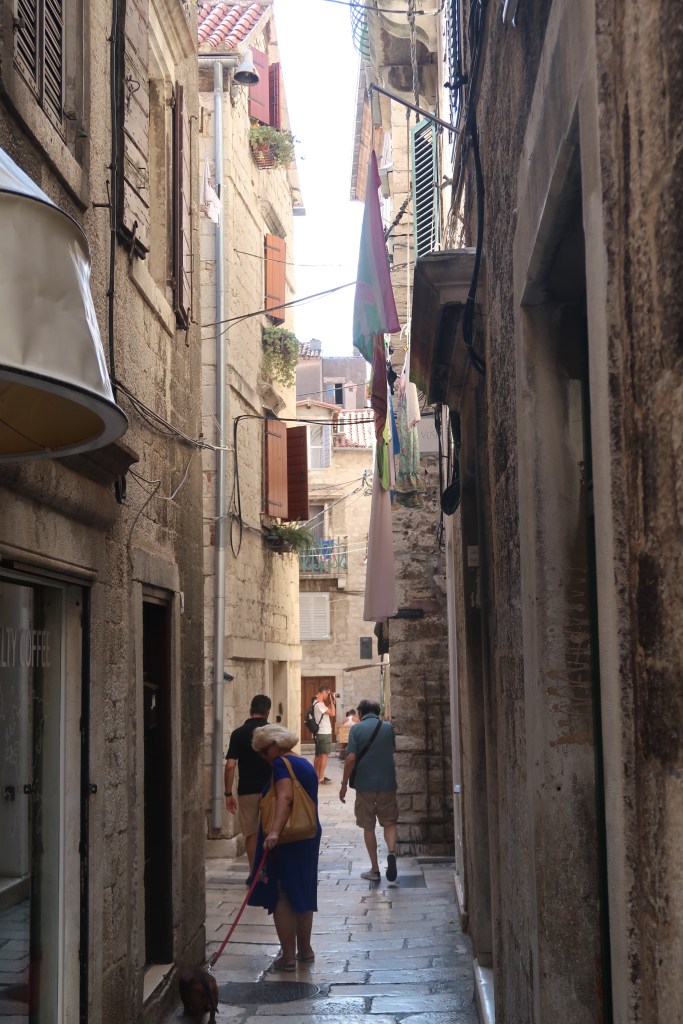 We had come to Split to prepare the boat for our first visitor since moving onboard two years ago. After clearing out the front cabin and bathroom (storage room) we went for a walk into the City and around the familiar narrow streets and squares. We also explored some parts of the Roman Palace which we hadn’t previously visited, it’s always interesting to see how people have built their houses in and around the old Palace structure over the Centuries.
