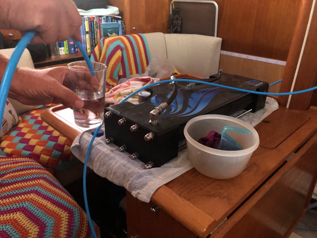 A big restriction while travelling has been getting fresh water into our tanks roughly every two weeks, so this is a game changer for us to be able to make our own whilst sitting in a pretty anchorage.