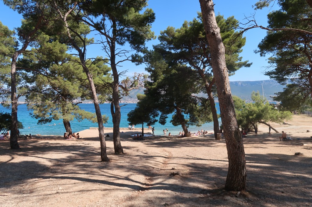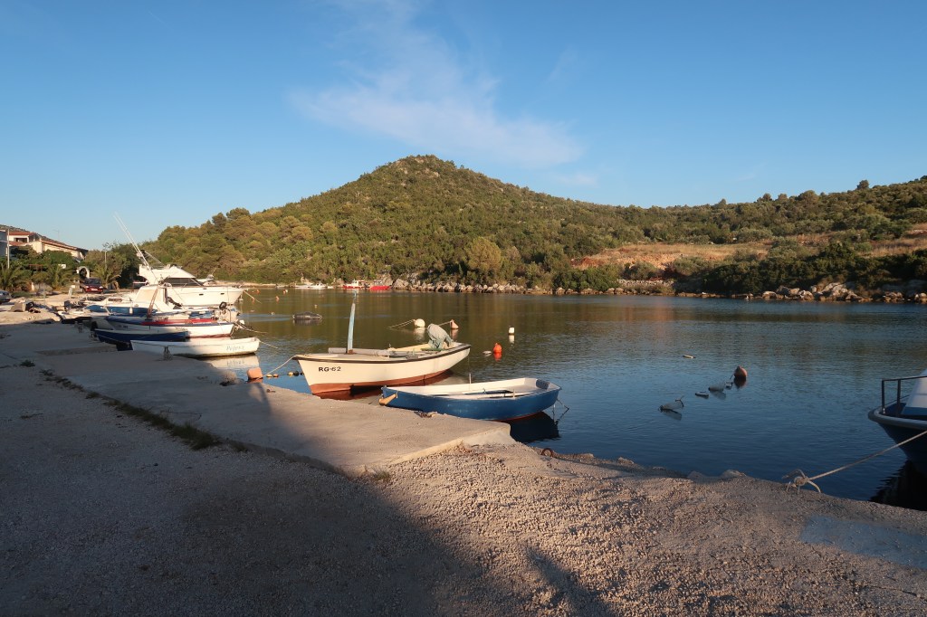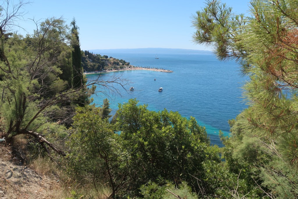 It was then time for a visit from the original Ed & Fred (aka Mum & Dad). They were on a Mediterranean cruise which was docking in Split for the day so we arranged to meet up with them on a nearby beach. The bay wasn’t sheltered enough for us to go and anchor with Ziggy so we took Ed & Fred II to shore (after evicting an unwanted passenger) and set off on a walk around the hilly coastline through the pine forest of the Marjan peninsular.