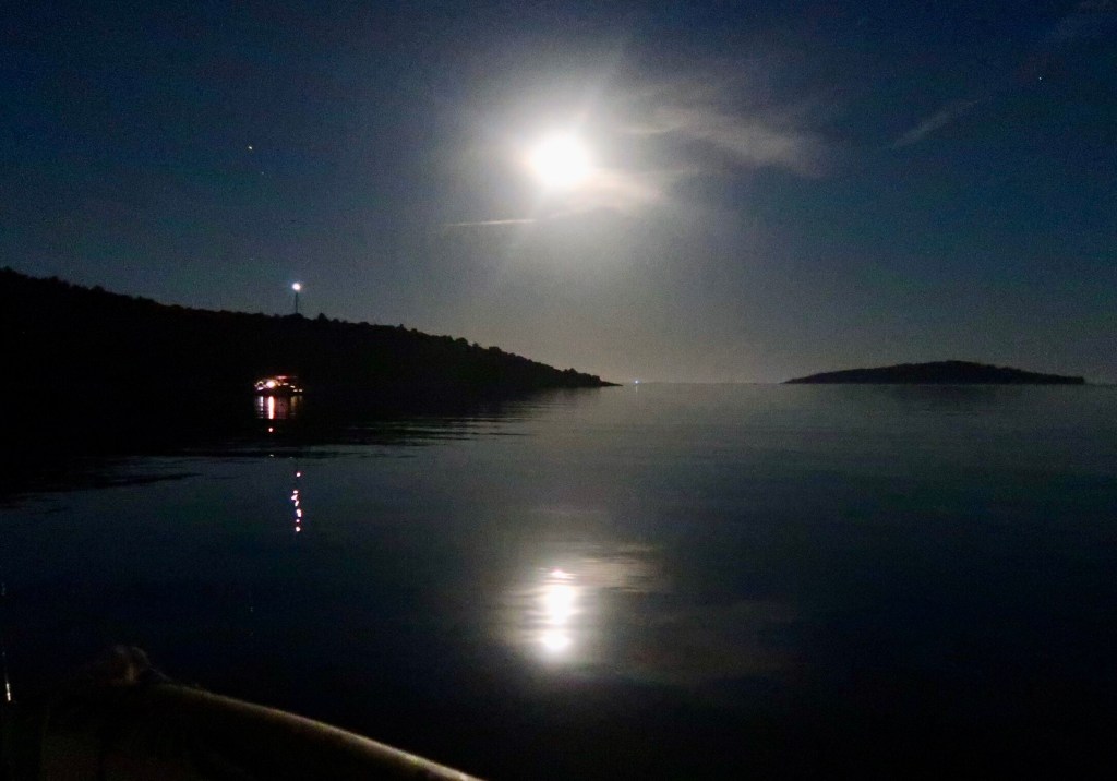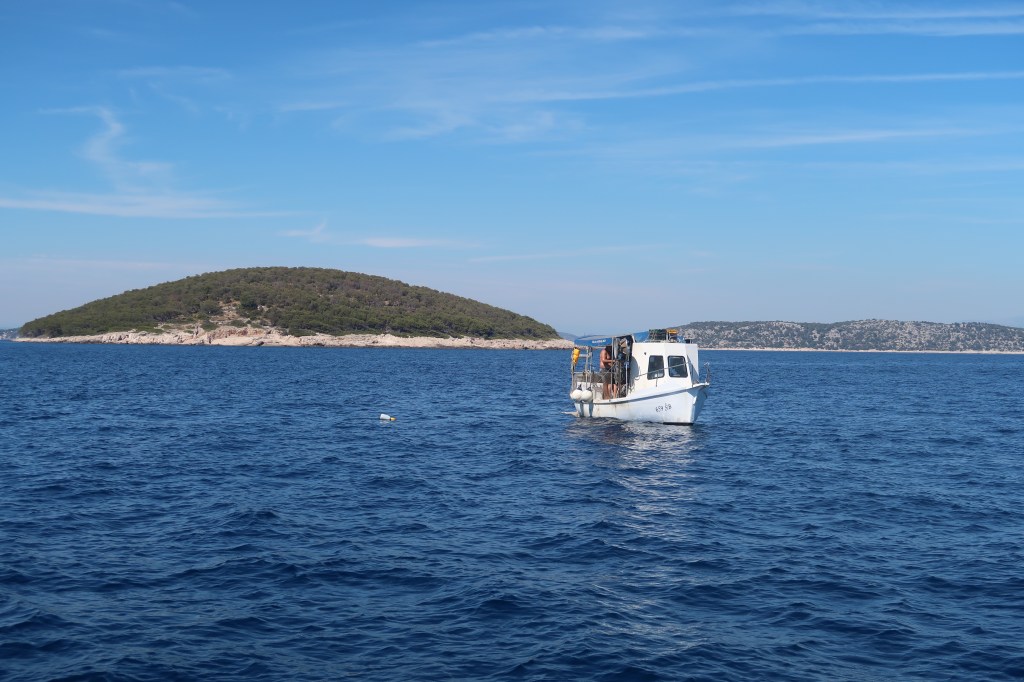 With a force 3 westerly wind we lifted our anchor (along with an old disused fishing net) and left Rogoznica. We sailed slowly around some small islands, avoiding the fishing boats, heading north towards Otok Zmajan in the Šibenik archipelago.