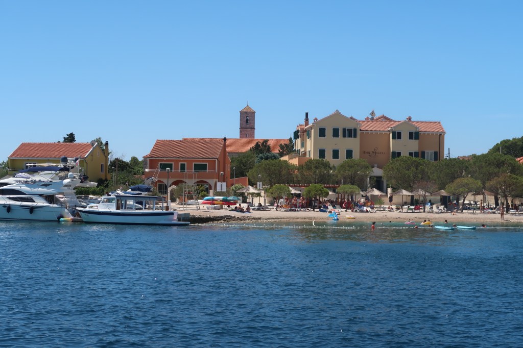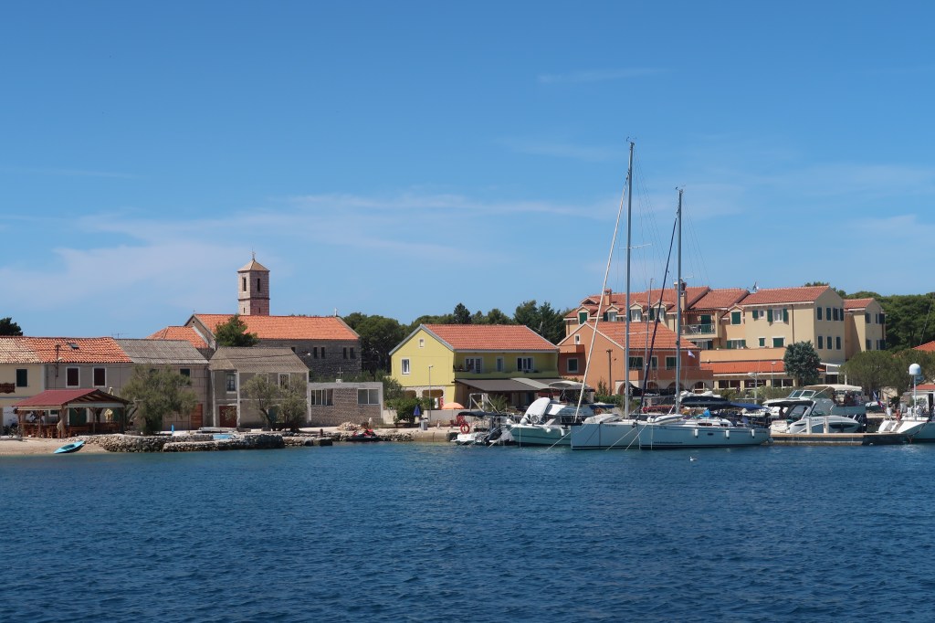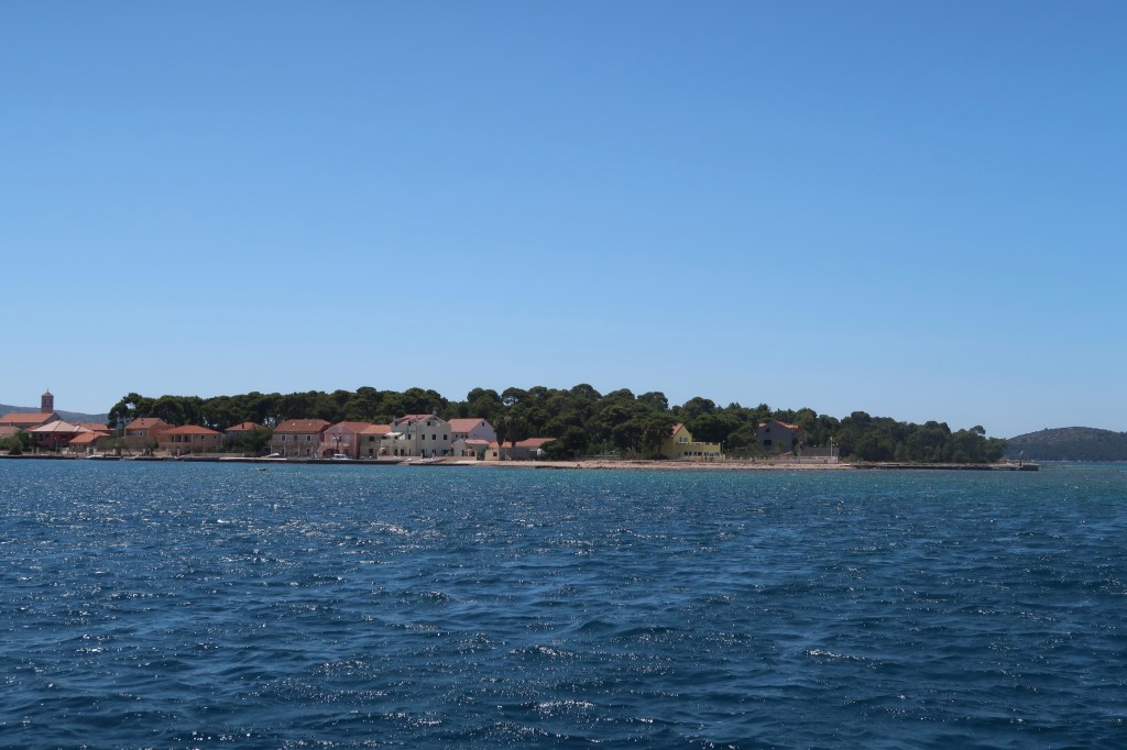 There is pretty village with well maintained pastel coloured townhouses built close to the blue sea, beaches and a small harbour. A ferry runs frequently across the short distance to Brodarica giving easy access to the mainland.