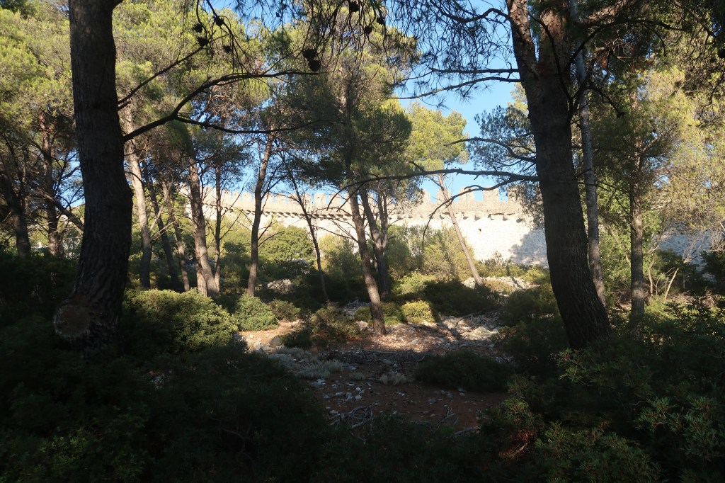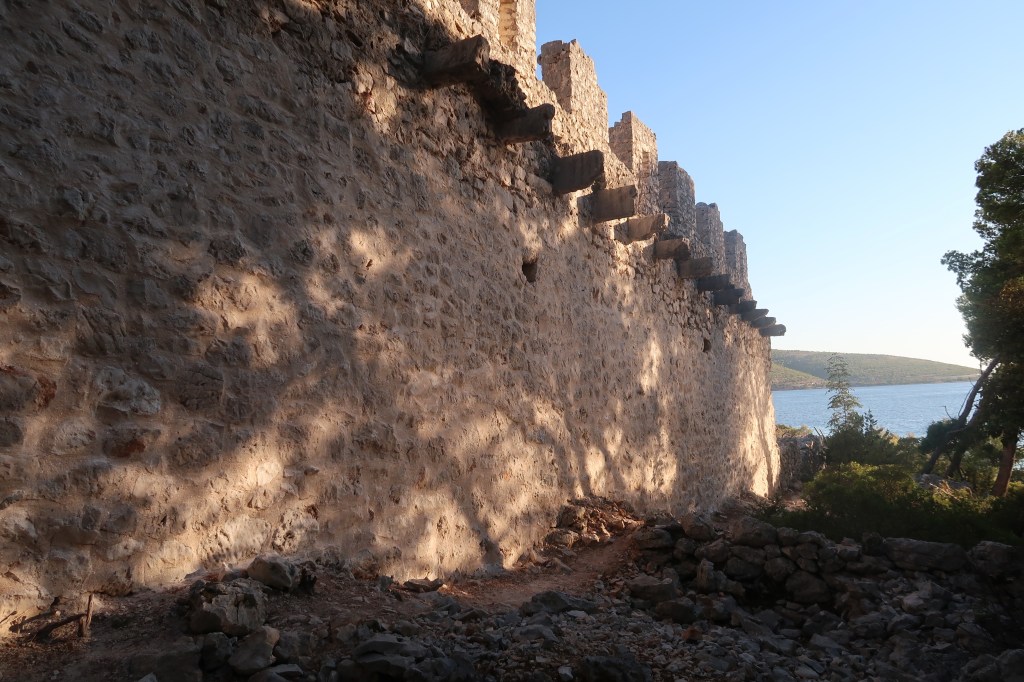 We went ashore in the evening to walk along the wall which is still in good condition with only the parts closest to the sea showing damage. It is about 10 meters high and 1 meter wide running up and over the hill which bridges the relatively short neck of the Ôstrica peninsular.