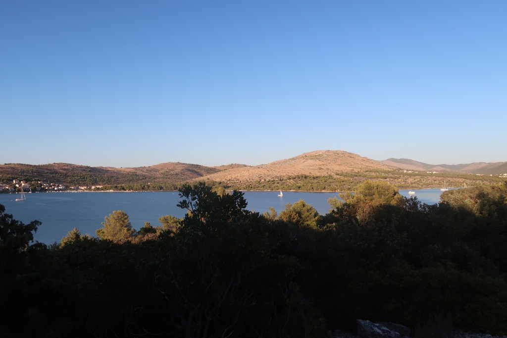 Leaving behind the small island of Krapanj, our next stop was just a few miles on to Uvala Mirine where we anchored in the lovely calm bay surrounded by trees with views of an old medieval defensive wall. It seems to be a popular bay for the locals who were sitting around the rocky ‘beaches’ along the shoreline under the shade of the trees with picnics and barbecues, sunbathing and swimming in the clear water.