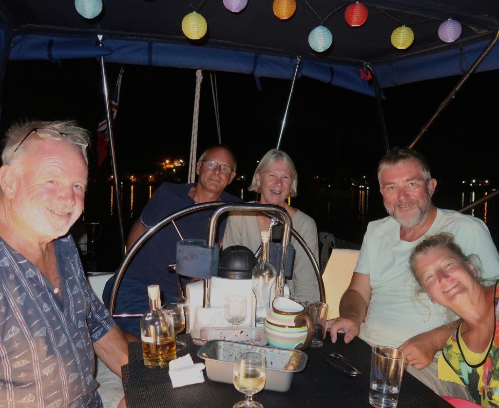 After a few days the storms passed and we took a short trip over to Spartahori on the north coast of Meganisi island. Here the bay is surrounded by pine trees, it has lovely clear water, a beach and a traditional seafront taverna. It was becoming a great week of socialising when some more friends cruising Greece came to meet us. Thank you to Chris and Sue for taking the feature photo this week.