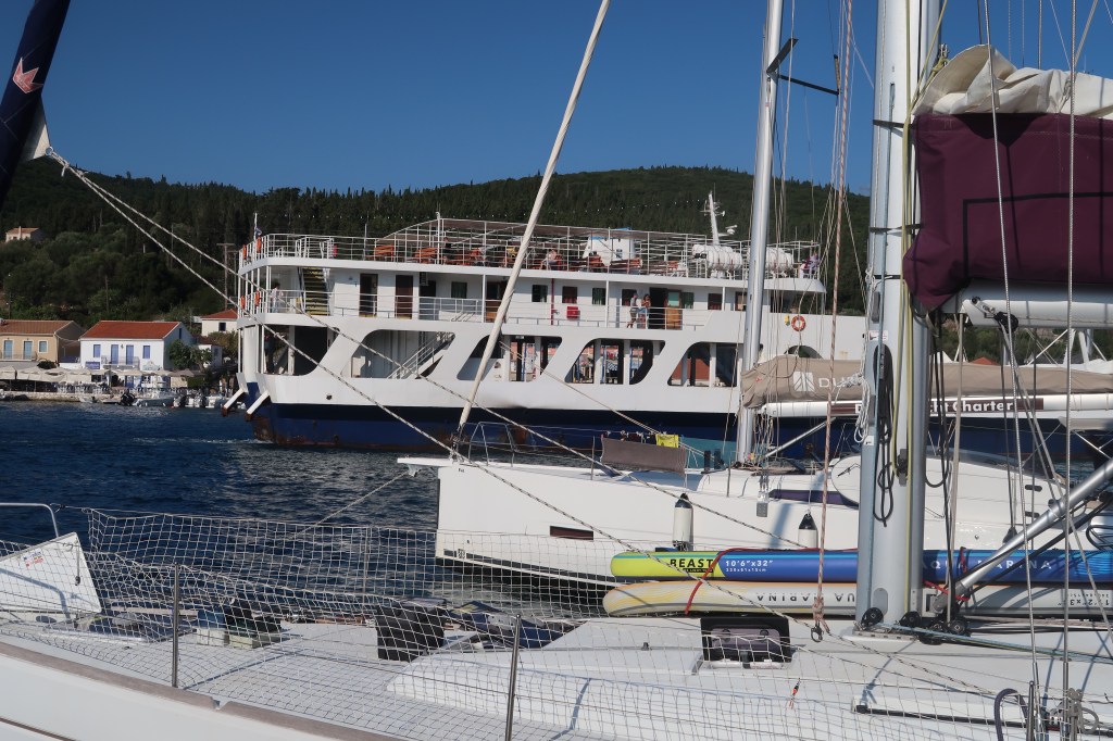 The following day we continued south for one more visit to Fiskardo, another favourite of ours on the north coast of Cephalonia. There was a good sailing wind but unfortunately it was coming from directly ahead, so it meant lots of tacking as we ‘zigzagged’ our way across the water.