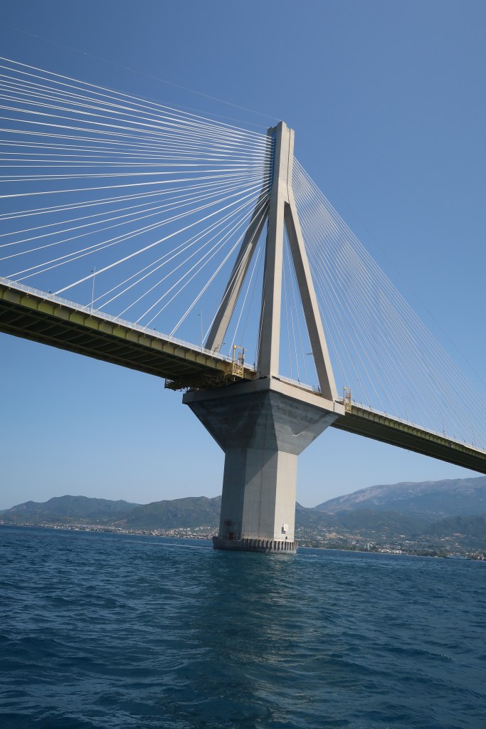 With little wind all morning we motored on into the Gulf of Patras towards the Rio–Antirrio bridge.