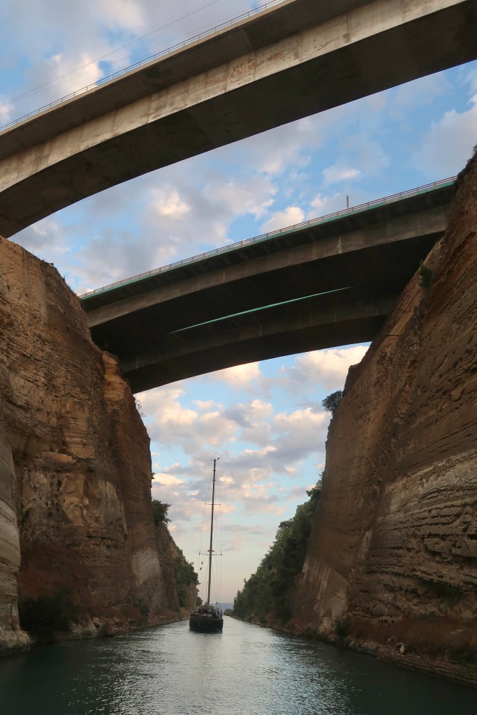 We arrived at the entrance to the Corinth canal at 5pm. Our intention was to anchor near the entrance and transit through the following morning but as we had made good time, the sea was calm and the sun was out with a clear blue sky, it seemed like a good opportunity to continue through.