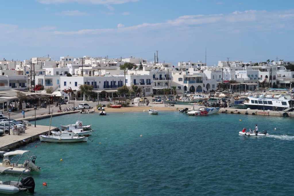 After a quiet couple of days in Despotiko we headed 14 nm north back through the channel between Paros and Antiparos, avoiding the rocks, to Parikia on the west coast of Paros.