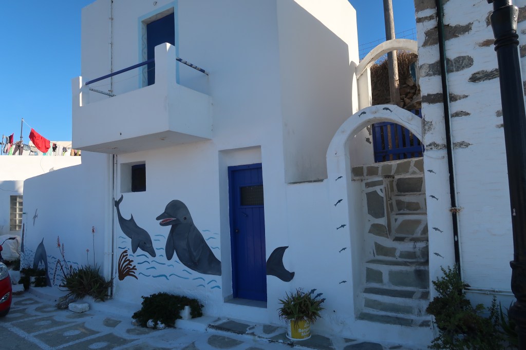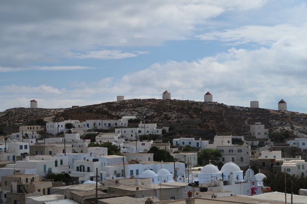 From the castle we had views of a series of windmills on a hill above the Chora. We walked up to them, renovation work was being carried out but mostly they were in disrepair or locked.