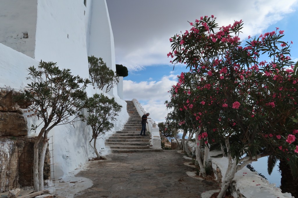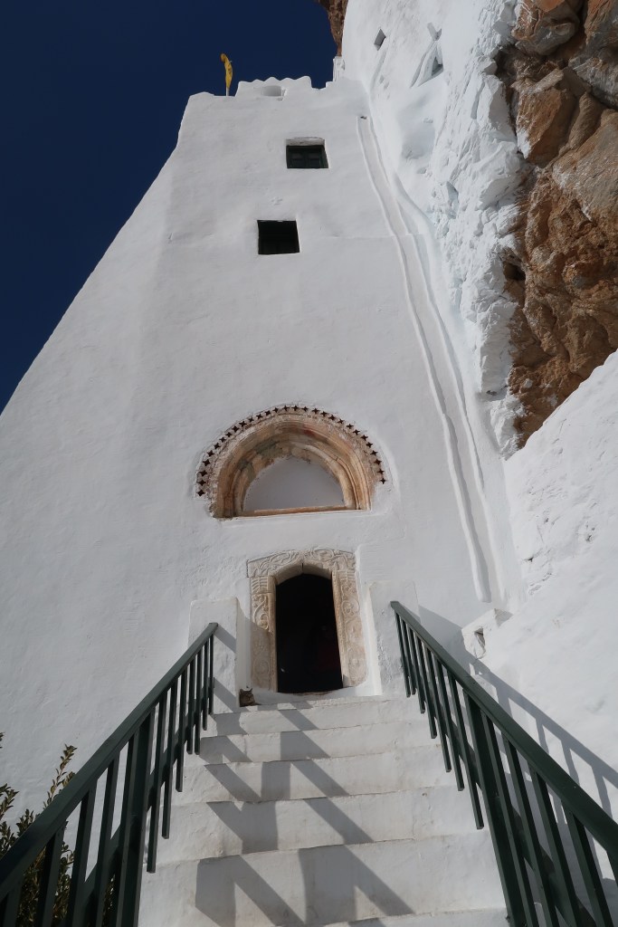 The monastery is the second oldest in Greece, originally constructed in the 9th century and refurbished in the 11th century, it was created as an ode to the Grace of Panagia, known as the Virgin Mary, who is the patron saint of the island. Her icon is believed to have arrived on an unmanned boat from Palestine and is protected in the monastery. Unfortunately photos were not allowed inside.