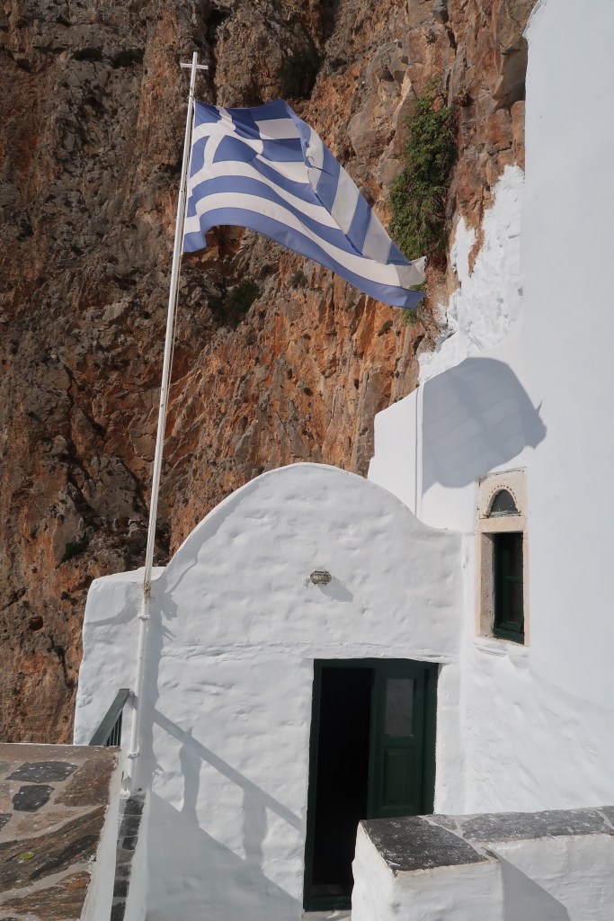 The most well known site is the Holy Monastery of Panagia Hozoviotissa. Built high up onto the cliffside 300m above sea level with views over the Aegean. The building is 40m high and only 5m wide, it has 8 stories utilizing the recesses in the rock.