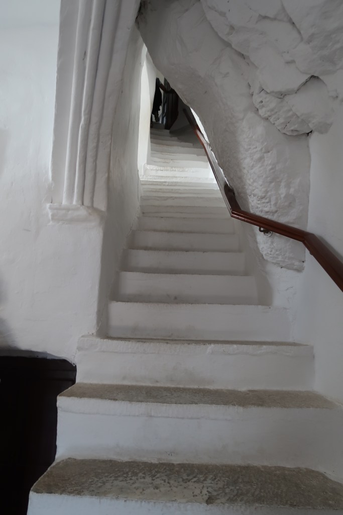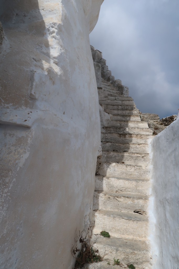 After admiring the views at the top (and catching our breath) we came to a low marble entrance and were then faced with another staircase leading up to the higher levels and the chapel where treasures and icons are kept.