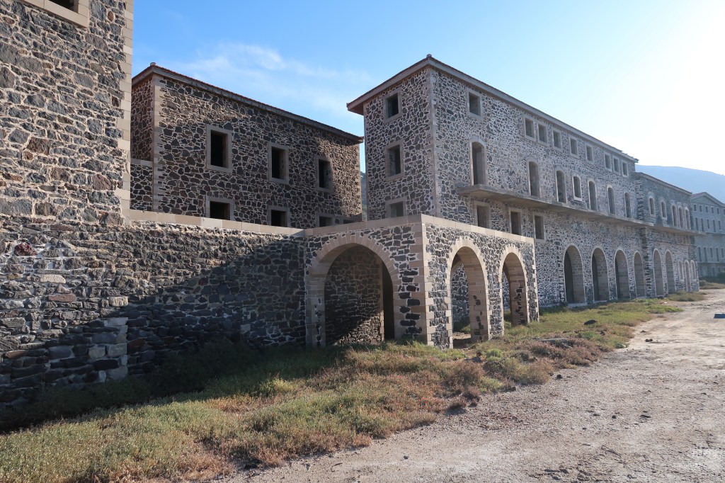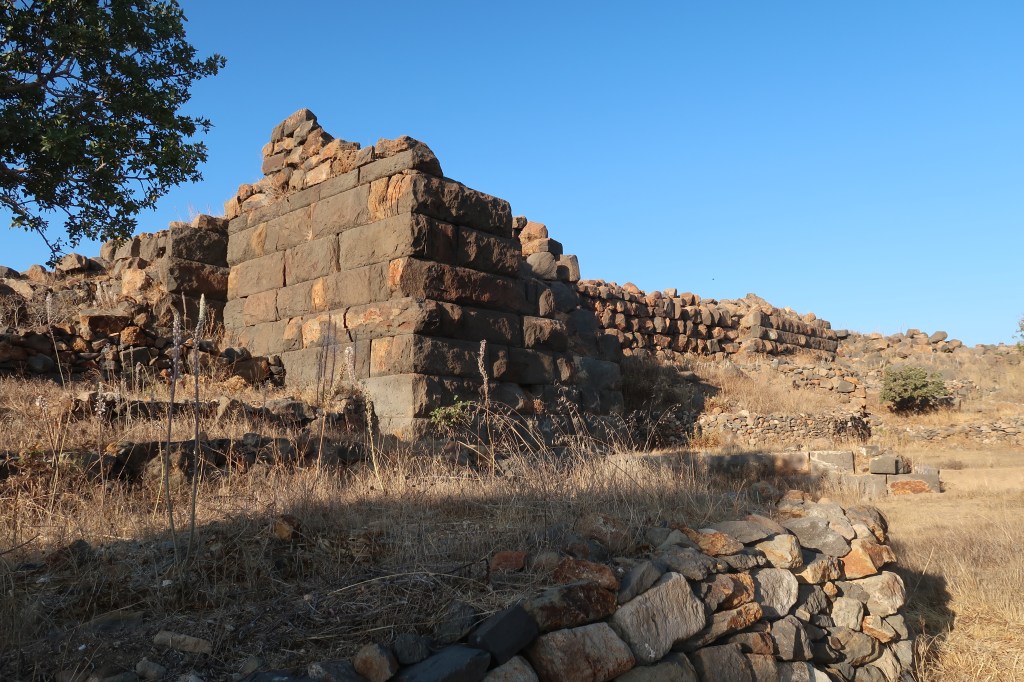Our last stop of the day was Mandraki village, just above the village is the ancient wall of Nisyros. The fortification was built in the 4th century BC and protected the ancient acropolis of the city which occupied the same site since the 7th century BC. It is now one of the most complete fortifications surviving from the classical period. The walls are 2m – 3.5m thick and are built with two faces of huge blocks of volcanic black stone and filled with rubble between. Six of the square defence towers still stand in part and were built 10m high.