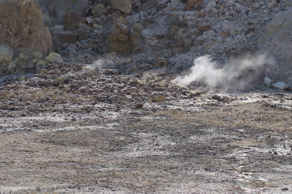 Our next stop was the hydrothermal field which is active but not erupting. The island has a 3-4 km wide caldera which was formed within the past 150,000 years. It has had several historical eruptions forming swollen elevations and craters, the latest being a steam explosion in 1888.