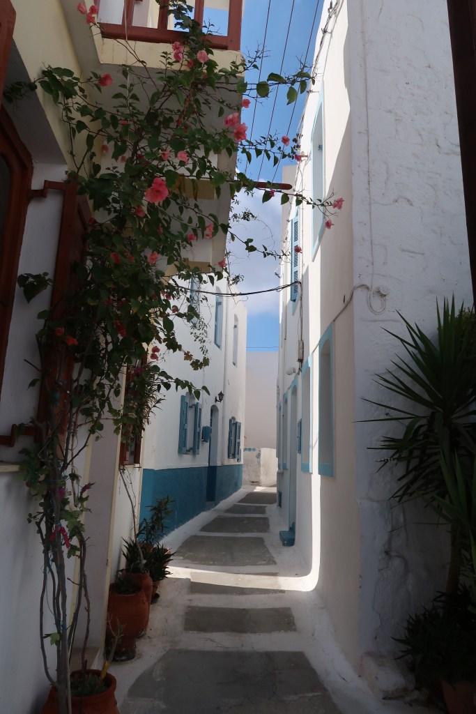 We anchored in the small harbour at Pali on the north of the island. It is a pretty fishing village and one of the oldest settlements in Nisyros. Set around a natural bay it has a sandy beach, whitewashed buildings and a very good traditional bakery (which we visited daily).
