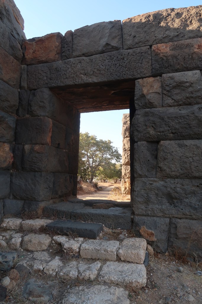 There is one gateway surviving in a protected position unseen by the enemy. It is over 2m wide and 3m high closed by double wooden doors secured by a cross bar. We were able to walk through and explore in peaceful solitude.