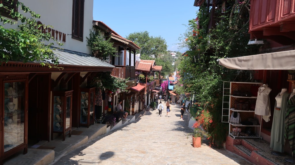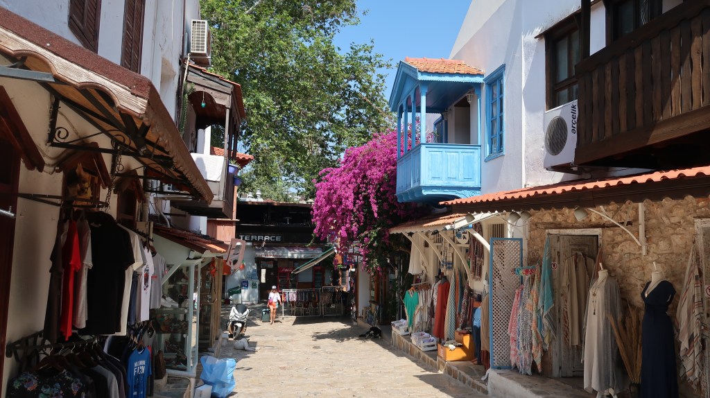Kaş (pronounced Cash) is a pretty little town which has quite a laidback Greek feel to it with the wooden shutters, narrow streets and large terraces to sit and soak up the sun. Like many towns in this part of Turkey, there was a substantial Greek population until 1923, when there was a forced citizen exchange between Greece and Turkey.