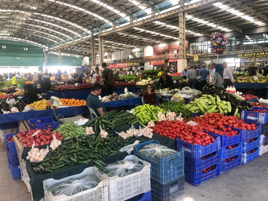 Kaş has a weekly market, not quite on the same scale as Finike market but still sold everything you need. It was set up on a sloping car park around the remains of random sarcophagus.