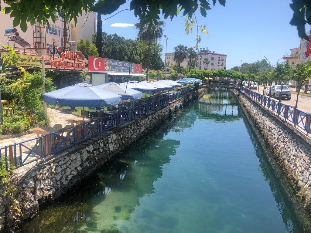 There are various remains of tombs around the town and close to the cafe is the Kings Tomb, a 4th-century BC Lycian sarcophagus. It’s mounted on a high base carved from solid rock and has two lions’ heads on the lid.